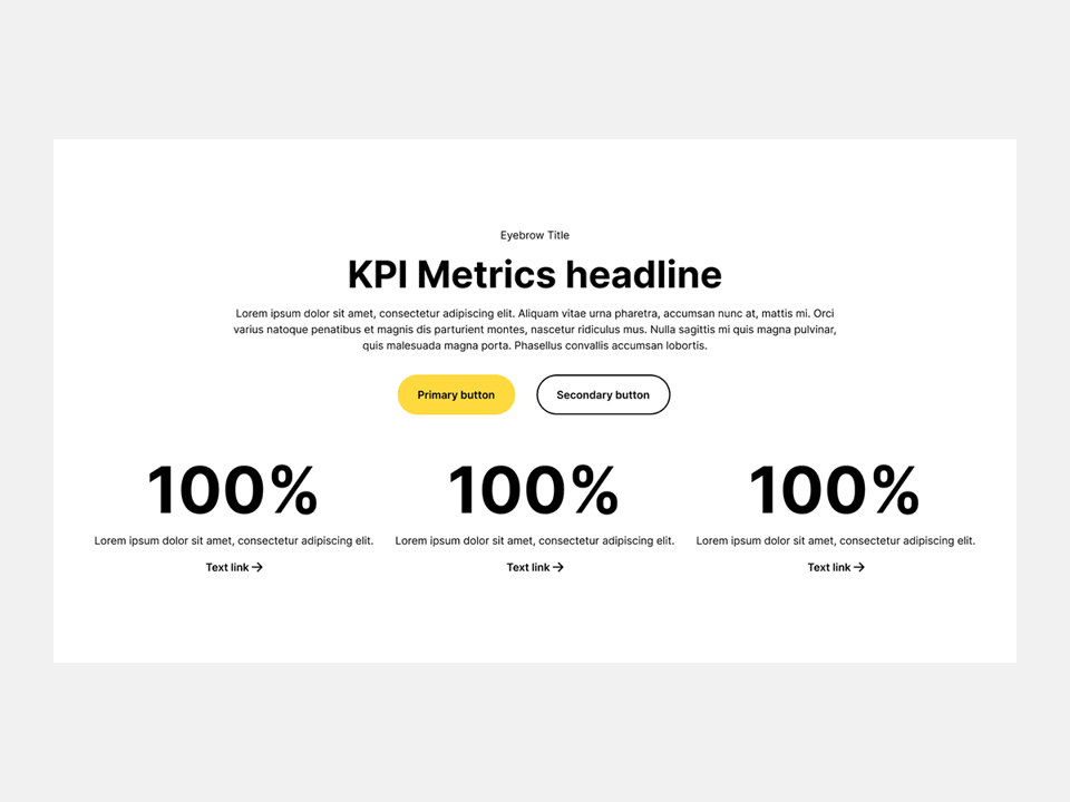 The KPI Metrics block highlights important results or performance indicators in a simple, visual format. By surfacing key figures at a glance, it helps communicate impact quickly and reinforces the value behind the work or message.